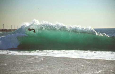 The Wedge is not a wave — it’s a 20-foot-plus meat grinder dreamed up by the devil himself. It heaves, bends and pulverizes in ways that good little waves aren’t supposed to act. The first time you swim or paddle out on a solid day, a typical thought might be, “Dang, is my chiropractor covered in my medical plan?” The Wedge is a combination of two waves that merge together, thrusting into a titanic slingshot that breaks with enough pounds per square inch to send Stone Cold Steve Austin to the mat.