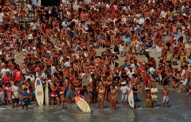 If you widen that photo, this is what you would find to the left and the right of that beautiful, solo surfer: