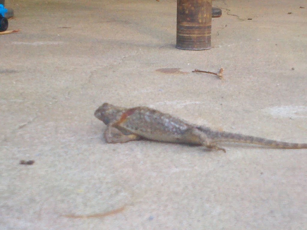 Oh, is that all? Silly boy. That’s not ewww. That’s a lizard. It’s pretty big, too. Wait back there – let Mama take a picture.