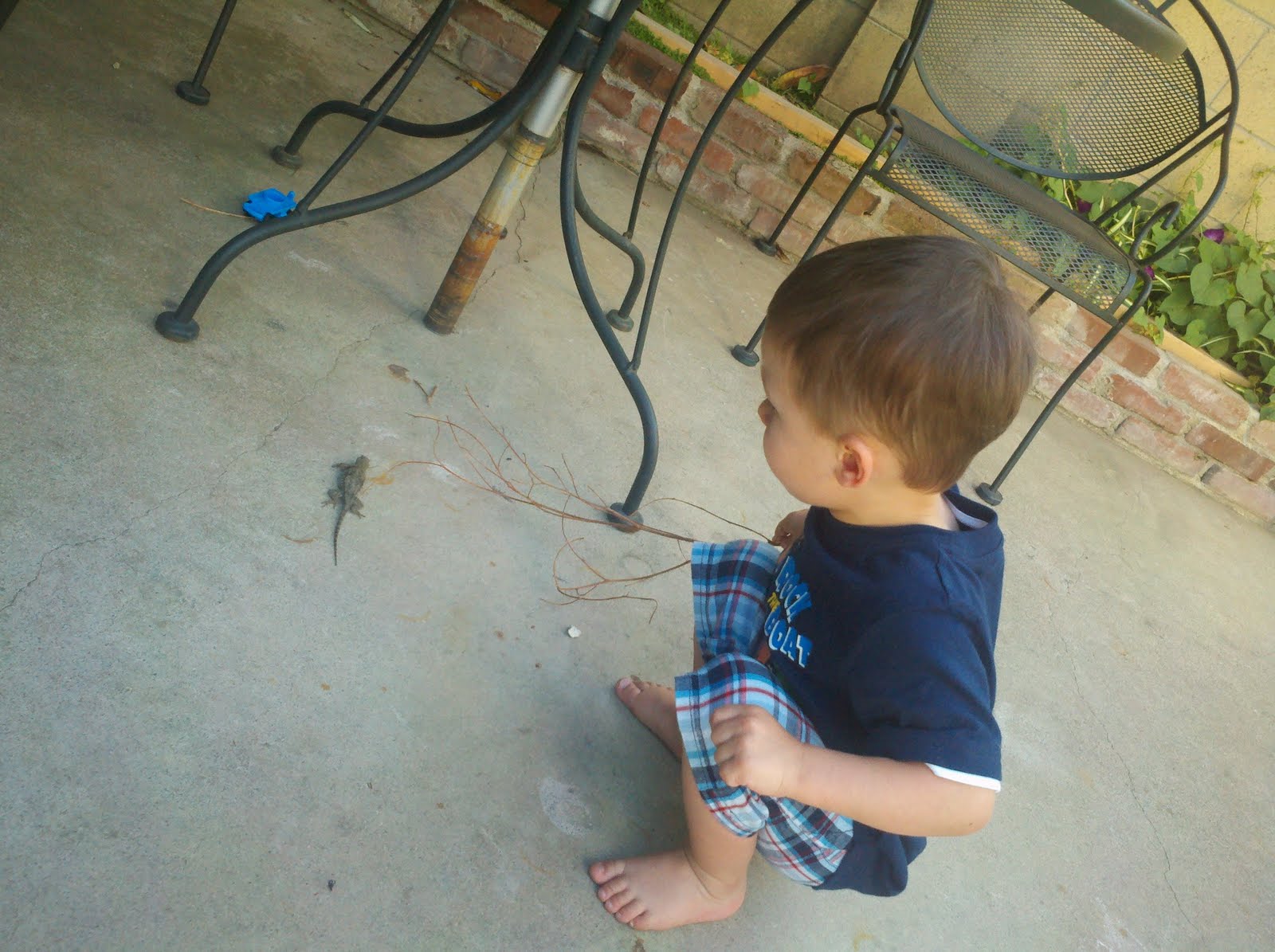 Wait. What? You want me to pick it up for you? Ummm, yeah. I’d rather not. Here. Here’s a stick. Maybe if you poke it the lizard will decide to run away and Mama can go back to… well, actually Mama wasn’t doing anything all that interesting, but she’s pretty sure she can find something more interesting than staring at a motionless lizard.