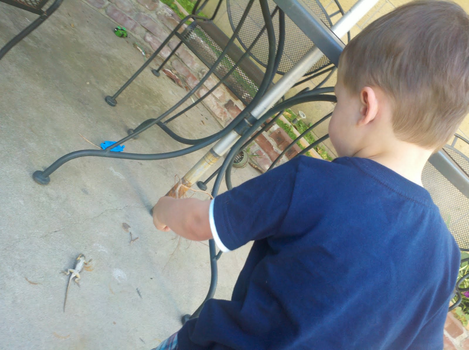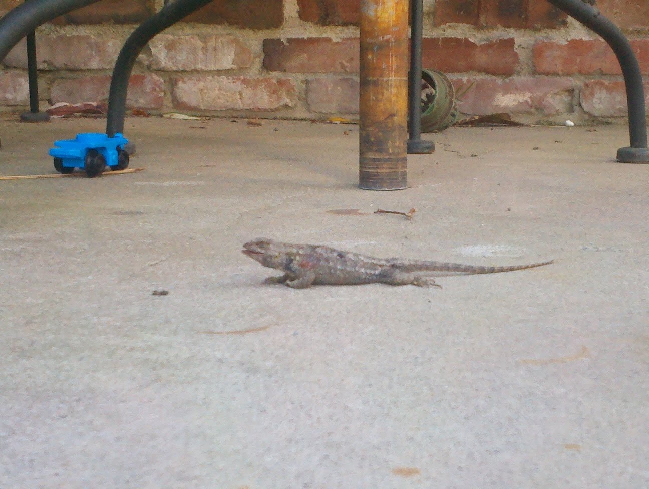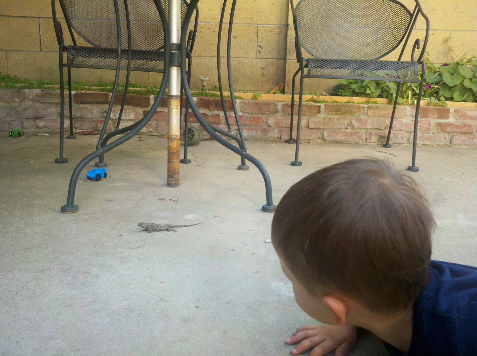Oh, is that all? Silly boy. That’s not ewww. That’s a lizard. It’s pretty big, too. Wait back there – let Mama take a picture.