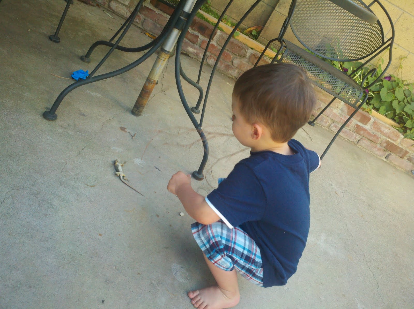 Wait. What? You want me to pick it up for you? Ummm, yeah. I’d rather not. Here. Here’s a stick. Maybe if you poke it the lizard will decide to run away and Mama can go back to… well, actually Mama wasn’t doing anything all that interesting, but she’s pretty sure she can find something more interesting than staring at a motionless lizard.