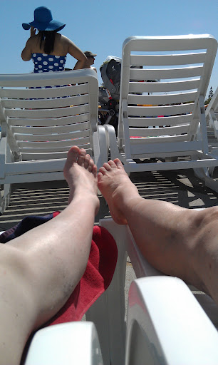 I lounged in the sun chairs with my family.