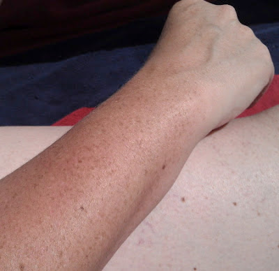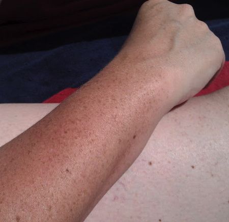 My forearm is pretty pale, and, well… here’s what it looks like against my leg: