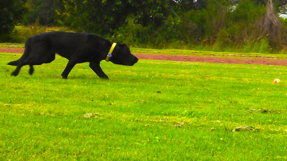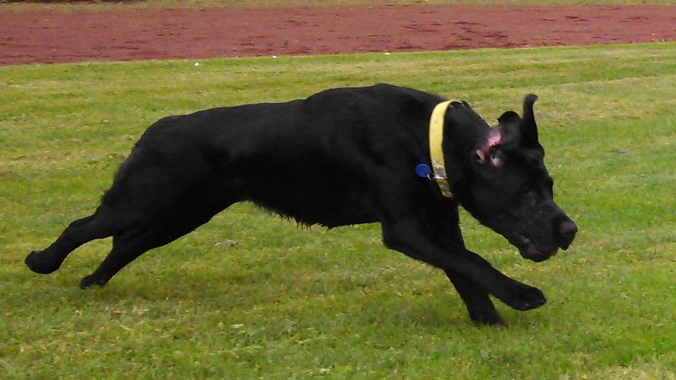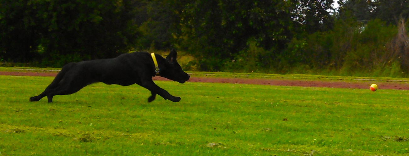 Artemis broke off playing with our neighbors’ dogs, wiggling her butt excitedly as she romped back to the fence dividing our properties.