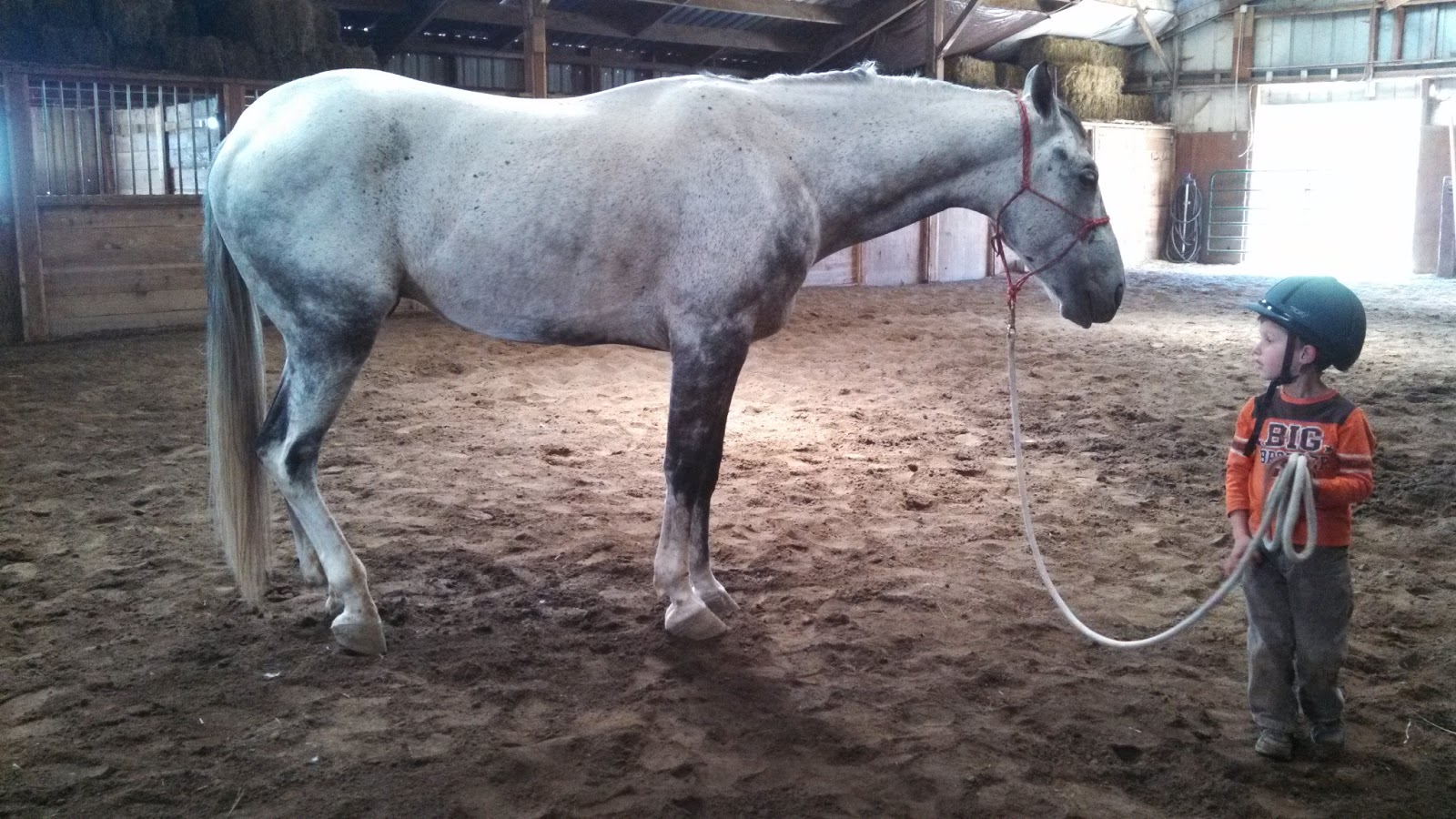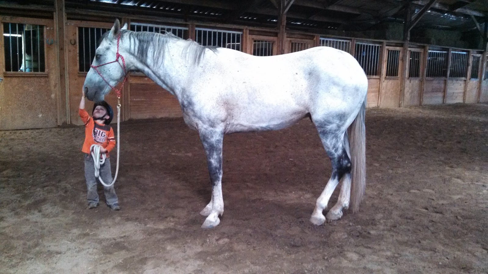 This morning the DragonMonkey came bursting into my bedroom at crack of dawn. “C’mon, Mama. Get out of bed. Can we go see the horse? Please? Let’s go see Not-Hodor. Can I ride him? Can I walk him on his leash? Please?”
